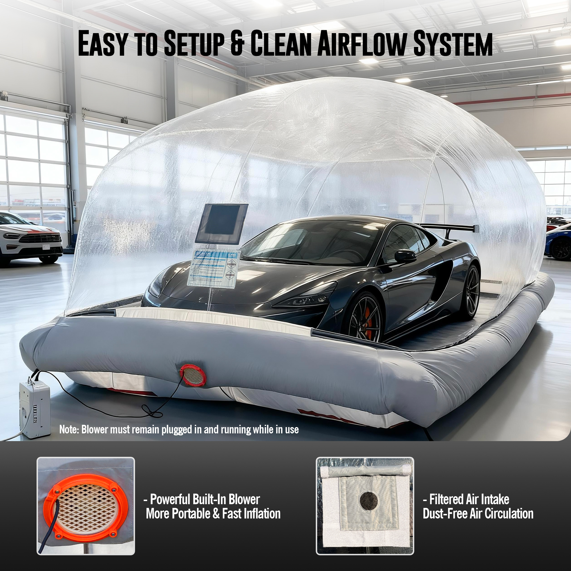 EJAEE Inflatable Vehicle Display Dome, Portable Car Bubble Garage Tent for Dustproof Storage, Vehicle Protection, and Display – 19′ / 5.8M