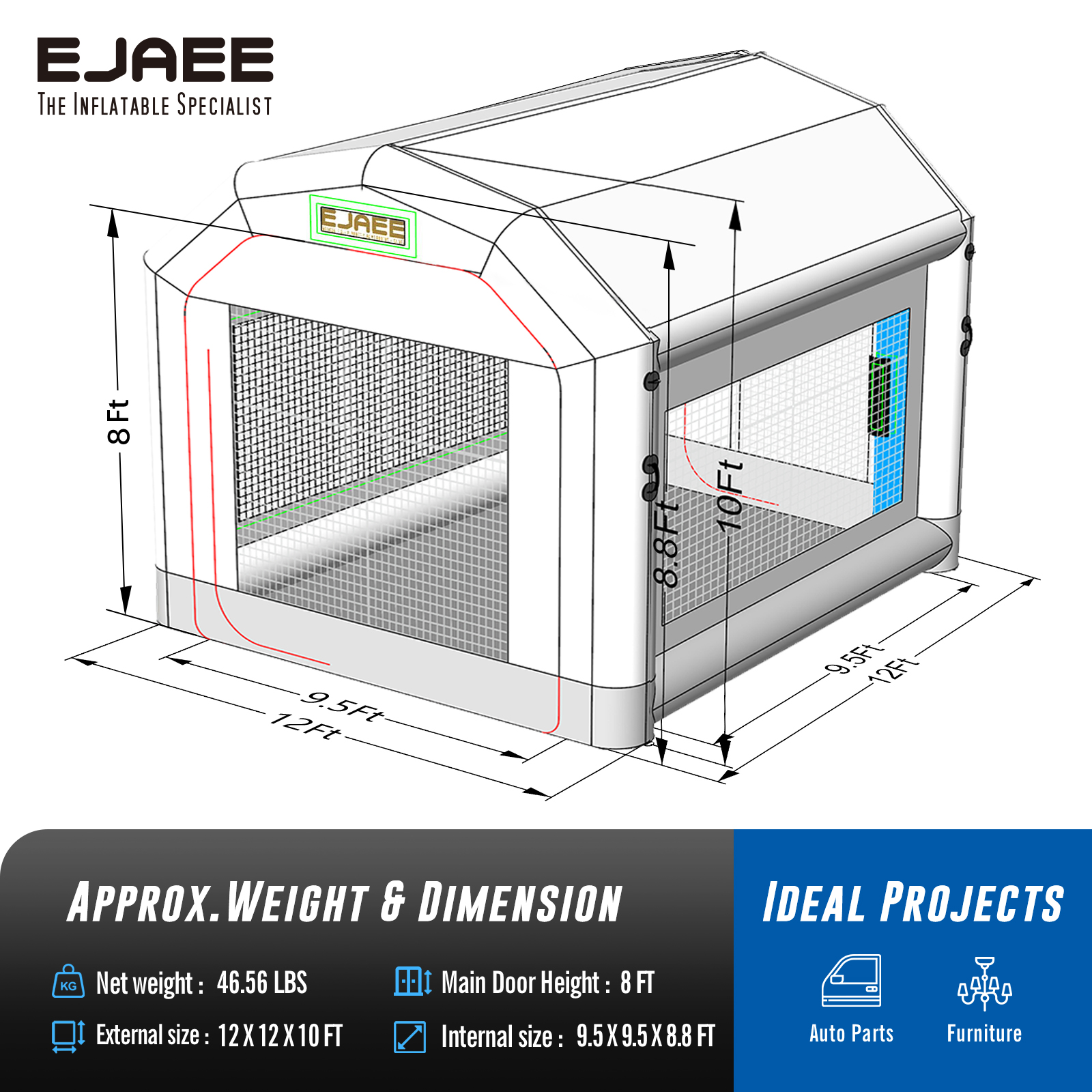 EJAEE Gold Series 12x12x10Ft Inflatable All Purpose Paint Booth – Standard Bundle