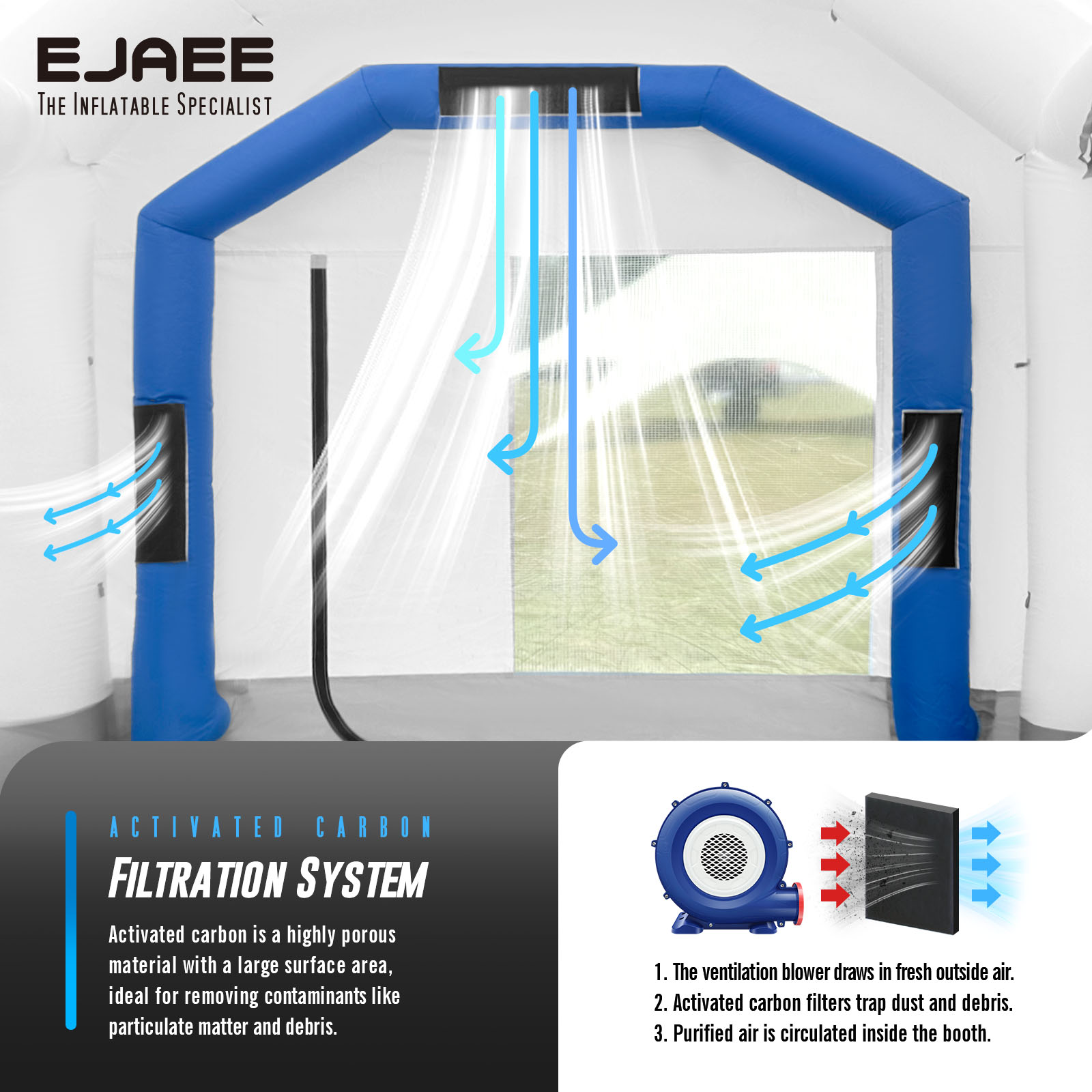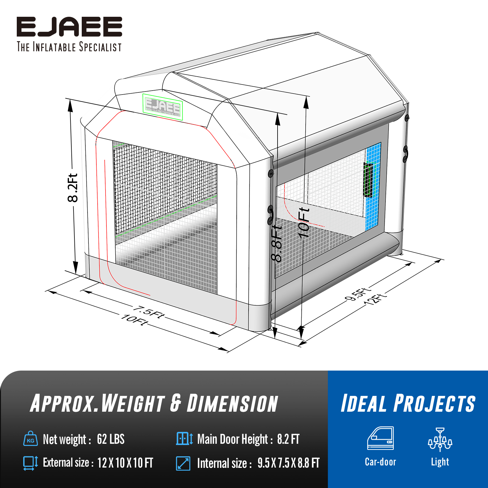 EJAEE Platinum Series 12x10x10Ft All Purpose Inflatable Paint Booth – Standard Bundle