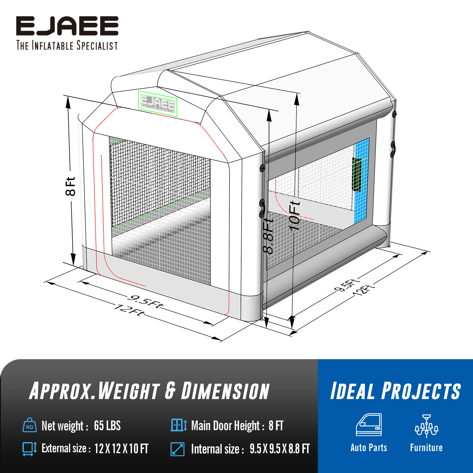 EJAEE Platinum Series 12x12x10Ft All Purpose Inflatable Paint Booth – Standard Bundle