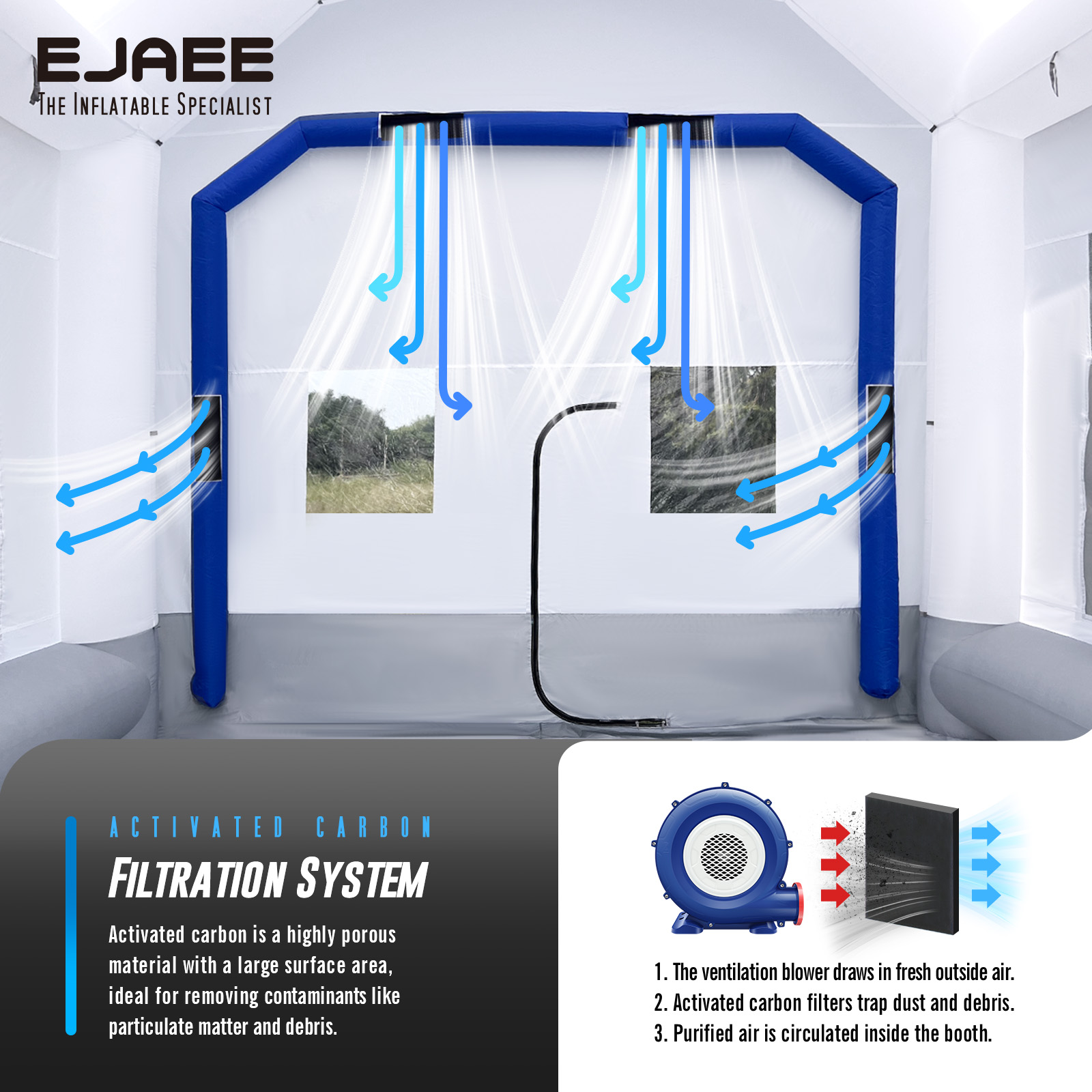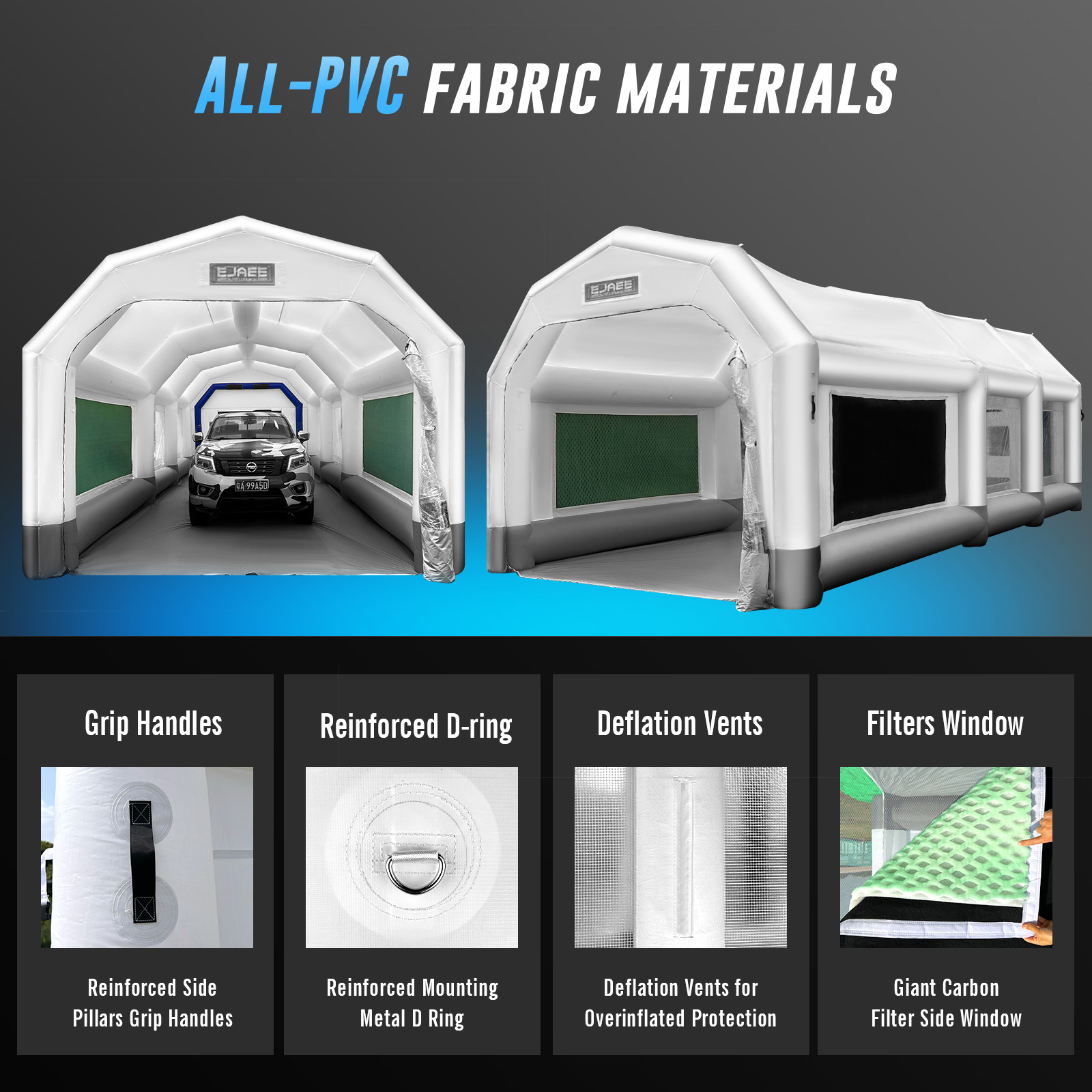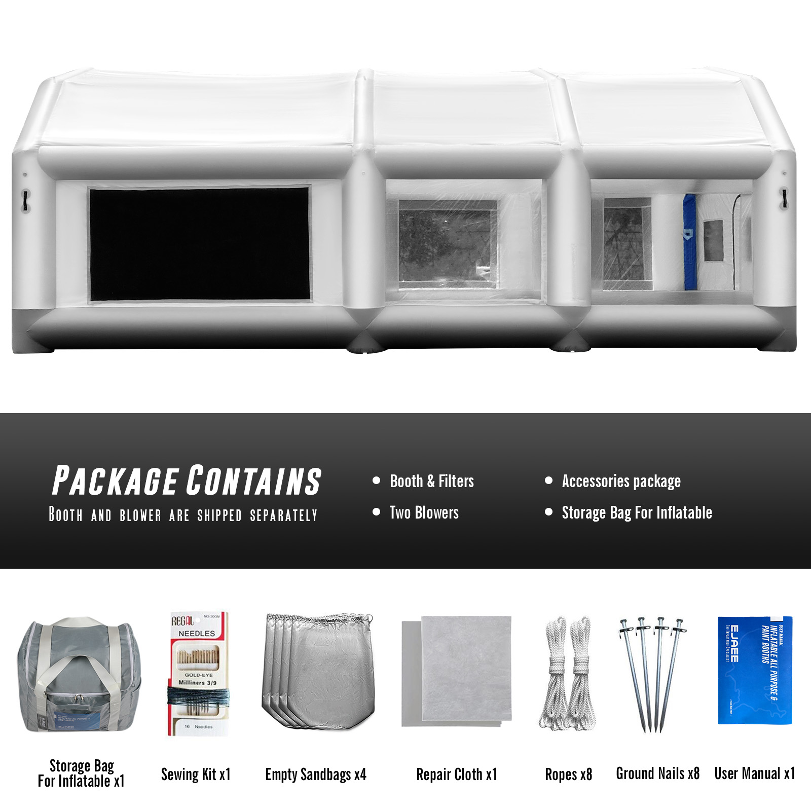 EJAEE Platinum Series 28x16x12Ft Inflatable Spray Paint Booth – Standard Bundle