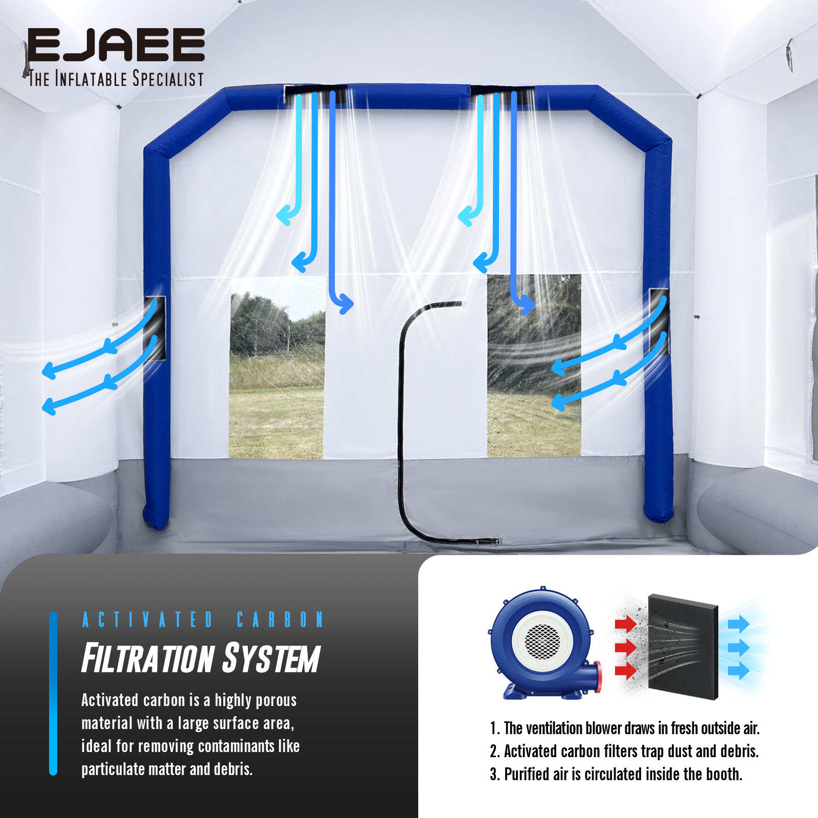 EJAEE Platinum Series 30x15x12Ft Inflatable Spray Paint Booth – Standard Bundle
