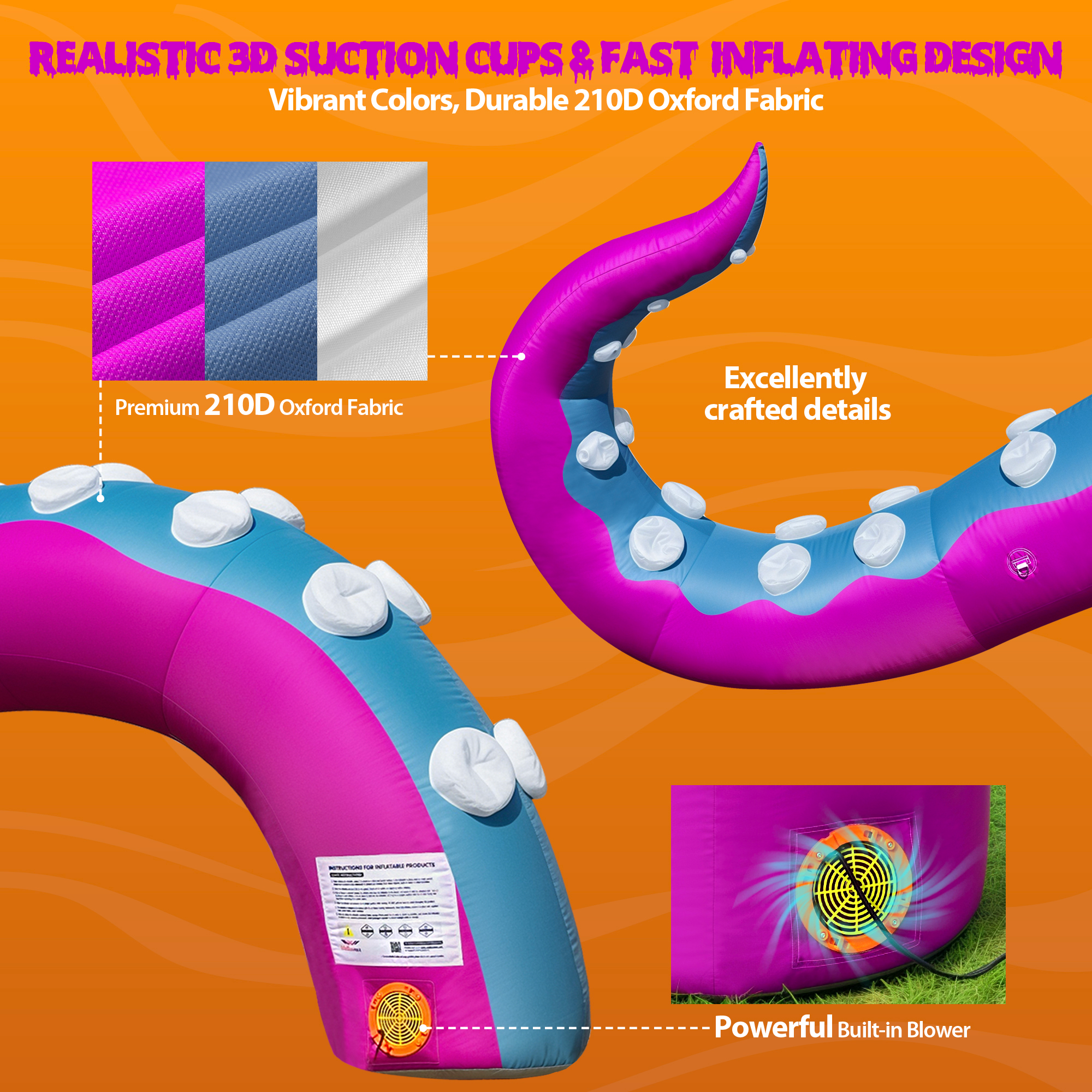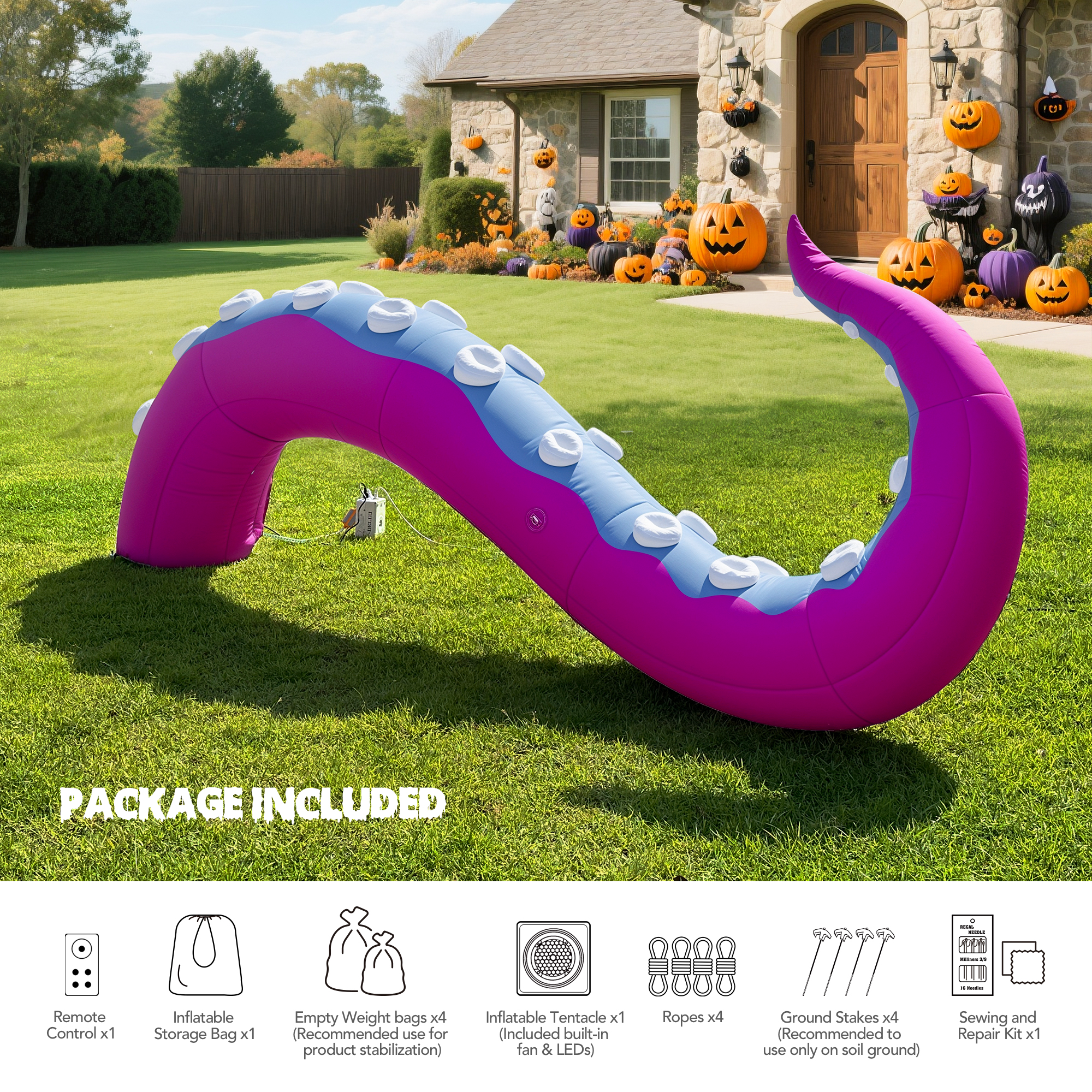 Wellcomer 13.3×6.9ft Inflatable Tentacles Halloween Décor – Ver. B