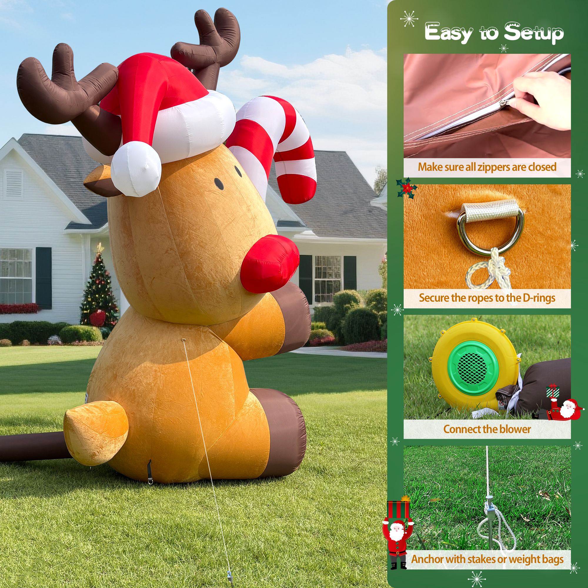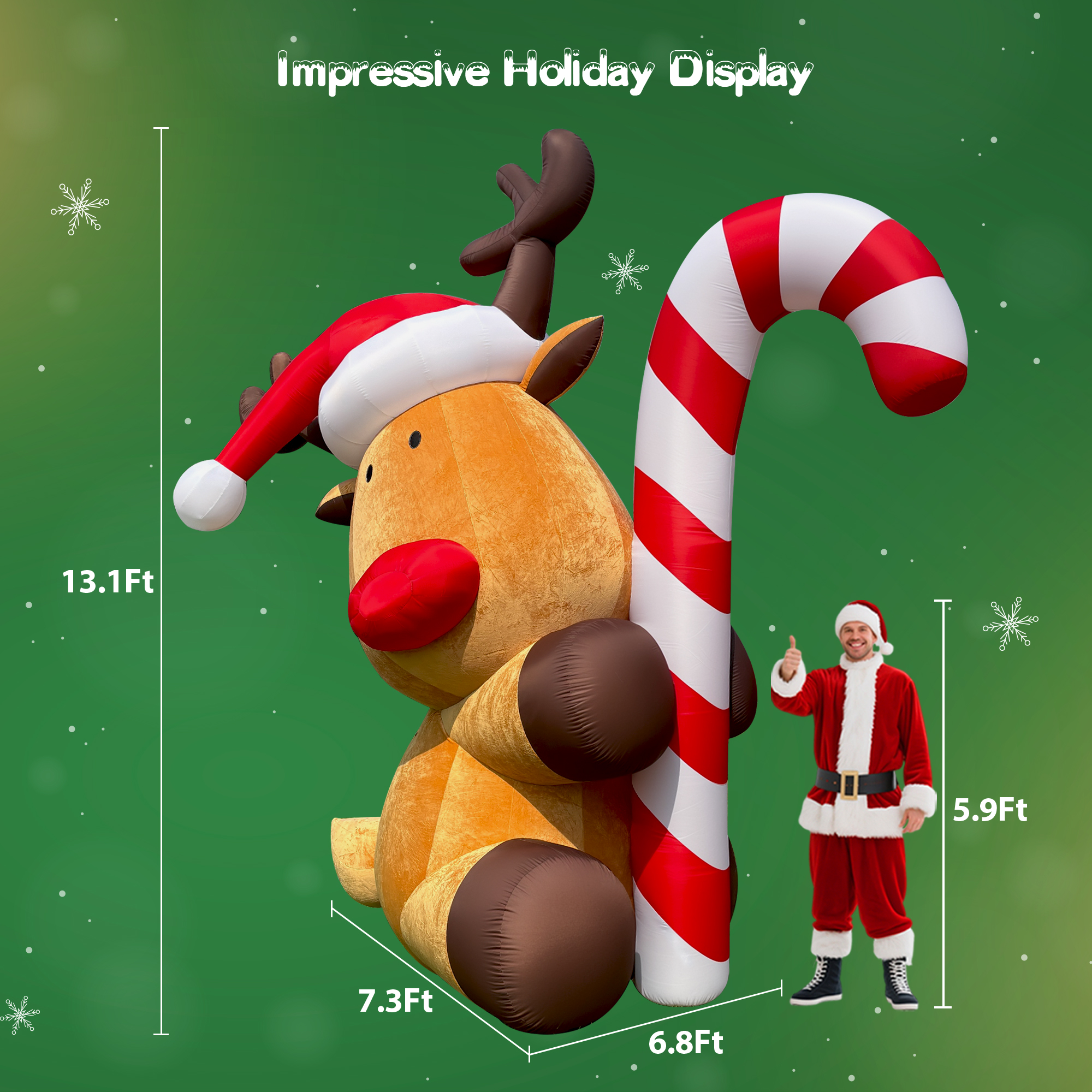 • Stands 13FT tall and 7.3FT wide when fully inflated—an adorable Christmas decor