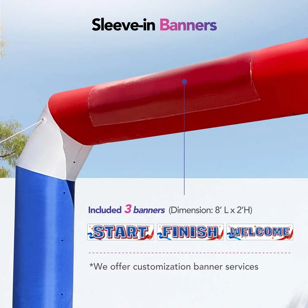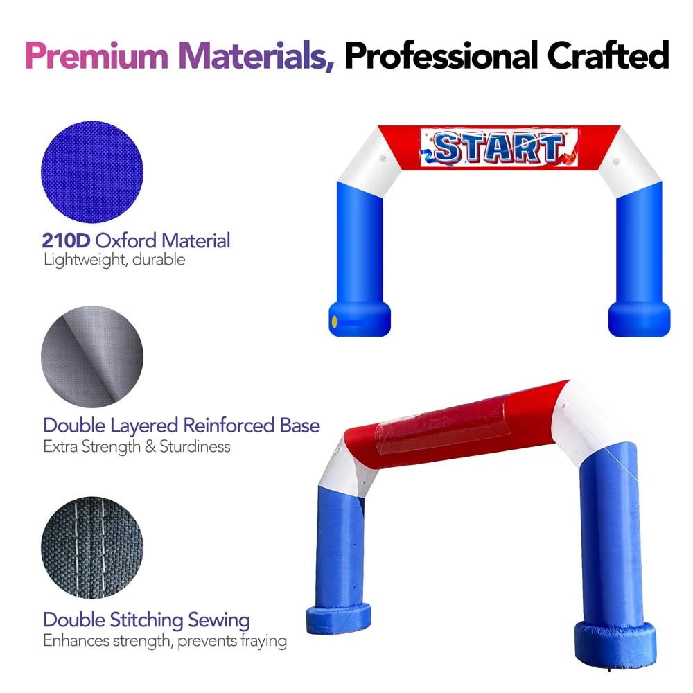 It’s large enough to easily catch a crowd’s attention, making it perfect for race start/finish points, marathon route markings, and entrances to various holiday parties or carnivals. The blue color scheme is simple yet vibrant, and it easily fits into any theme. The built-in blower is a plus, making the entire set-up and teardown process quick and efficient. Not having to purchase a separate blower saves a lot of trouble and makes transportation easier. The polygonal design of the arch adds some unique visual elements and brings a new twist to the traditional round arch. The materials look strong and durable enough to handle multiple uses and outdoor environments.