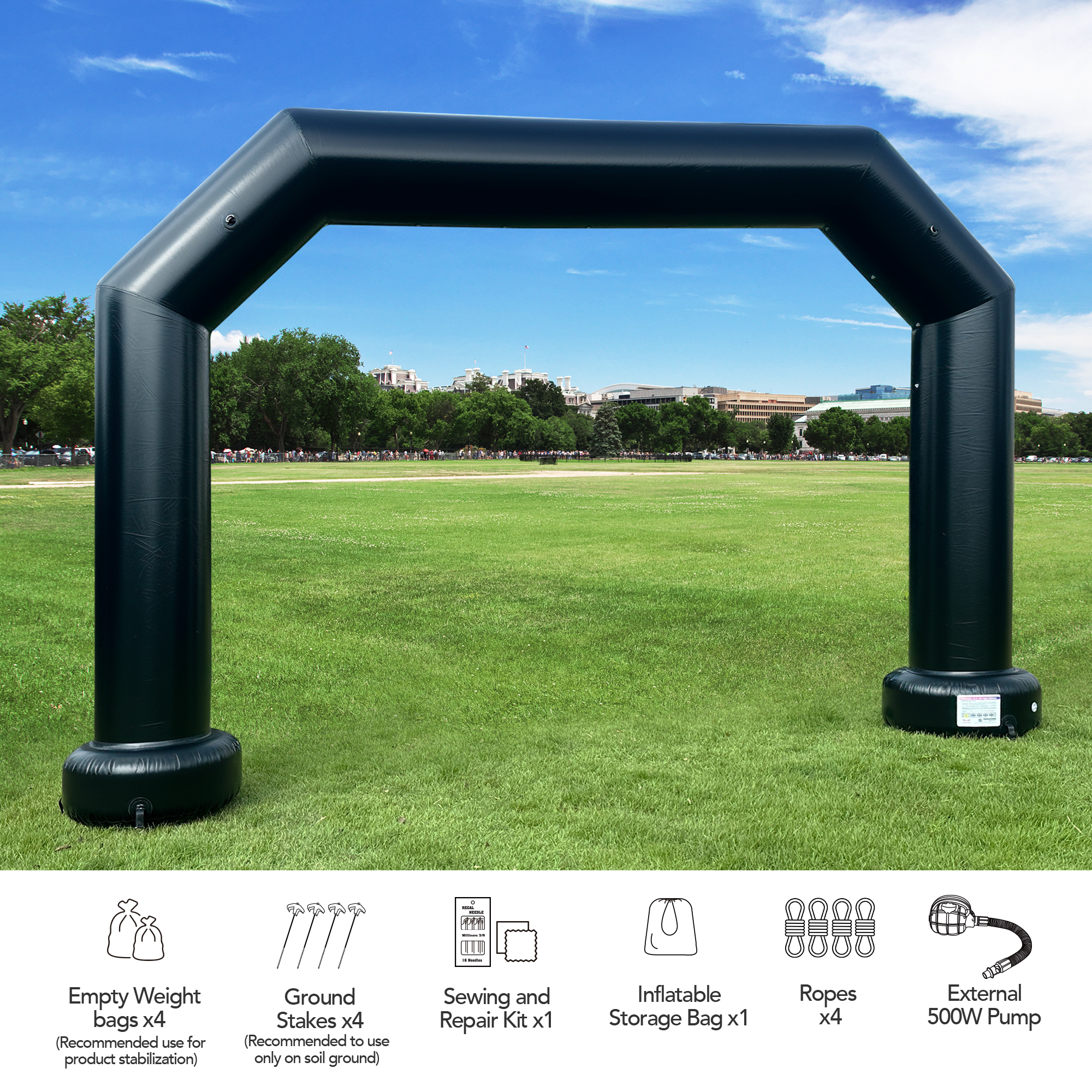 Wellcomer 21Ft Airtight PVC Polygon Inflatable Arch – Black