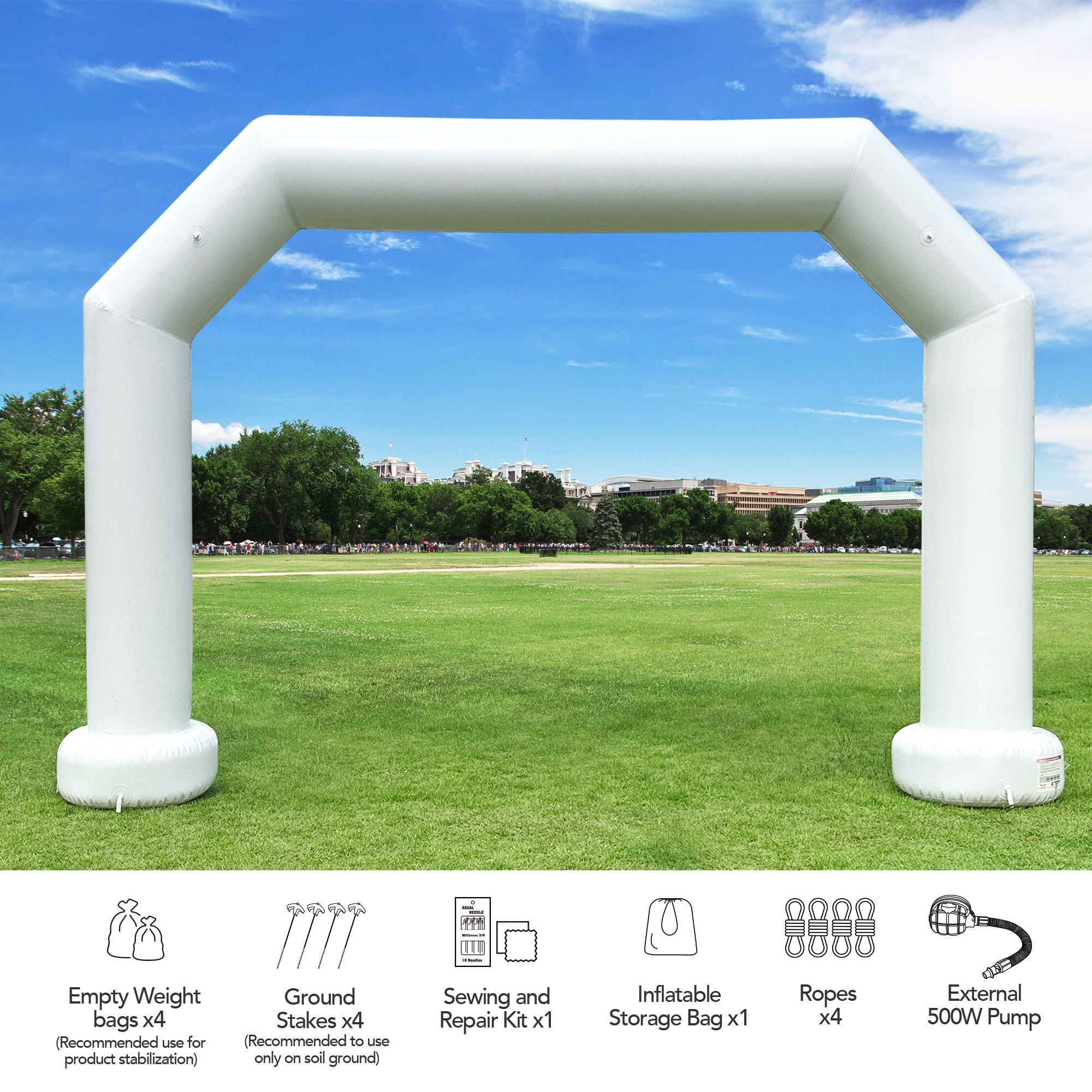 Wellcomer 21Ft Airtight PVC Polygon Inflatable Arch – White