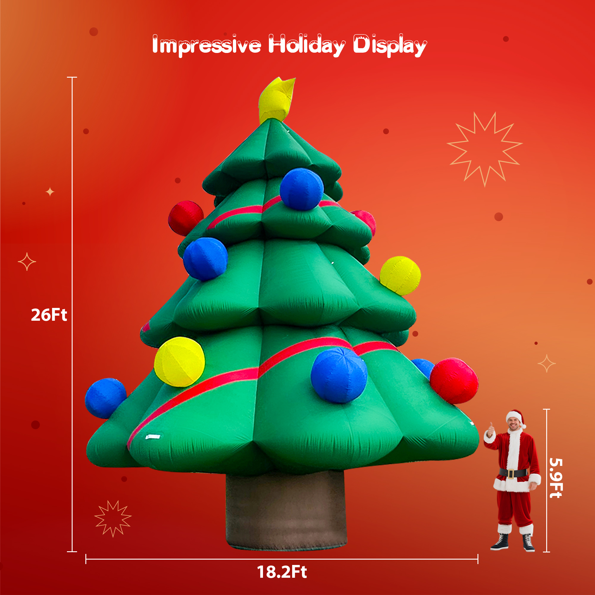• Stands 26FT tall and 18.2FT wide when fully inflated—an classic Christmas decor