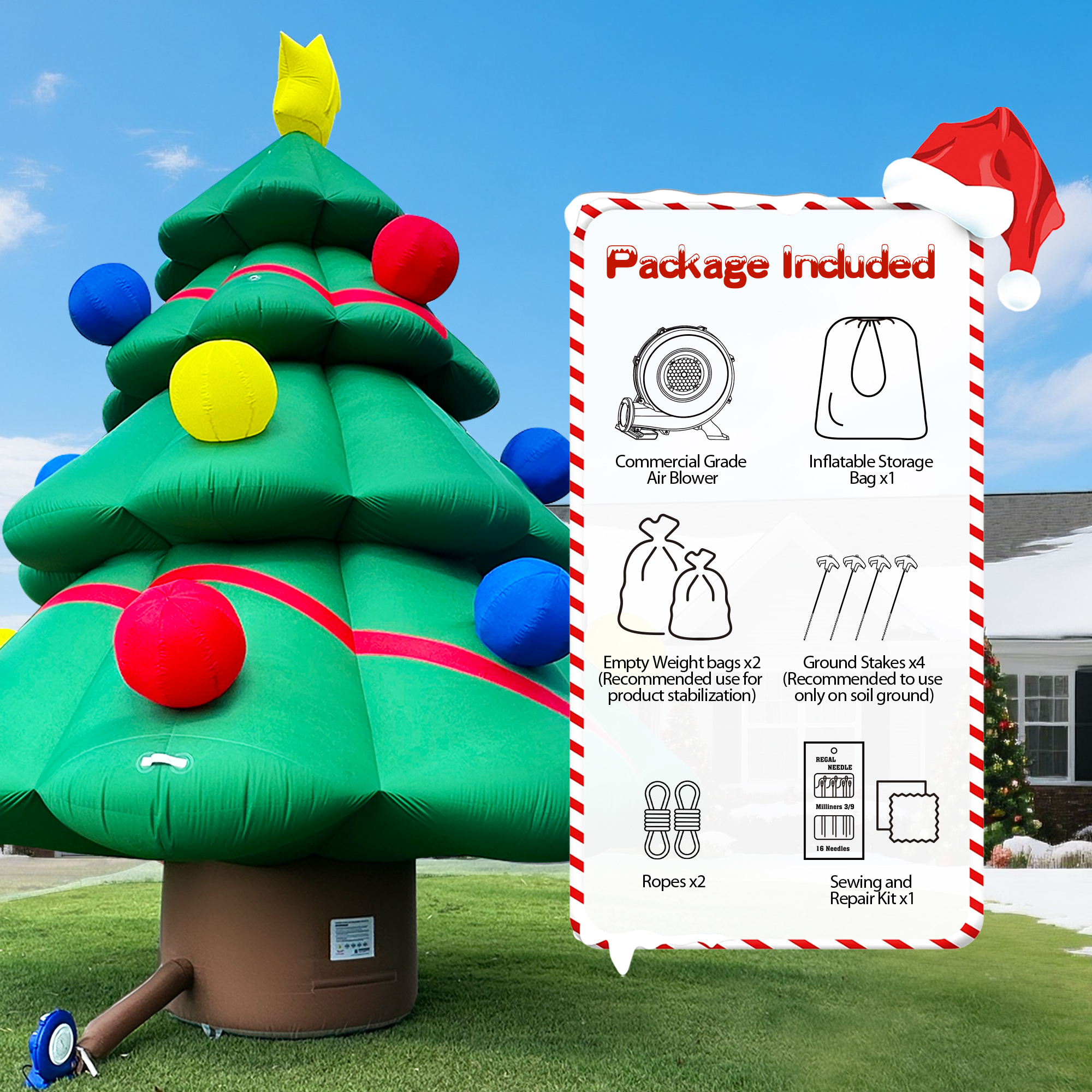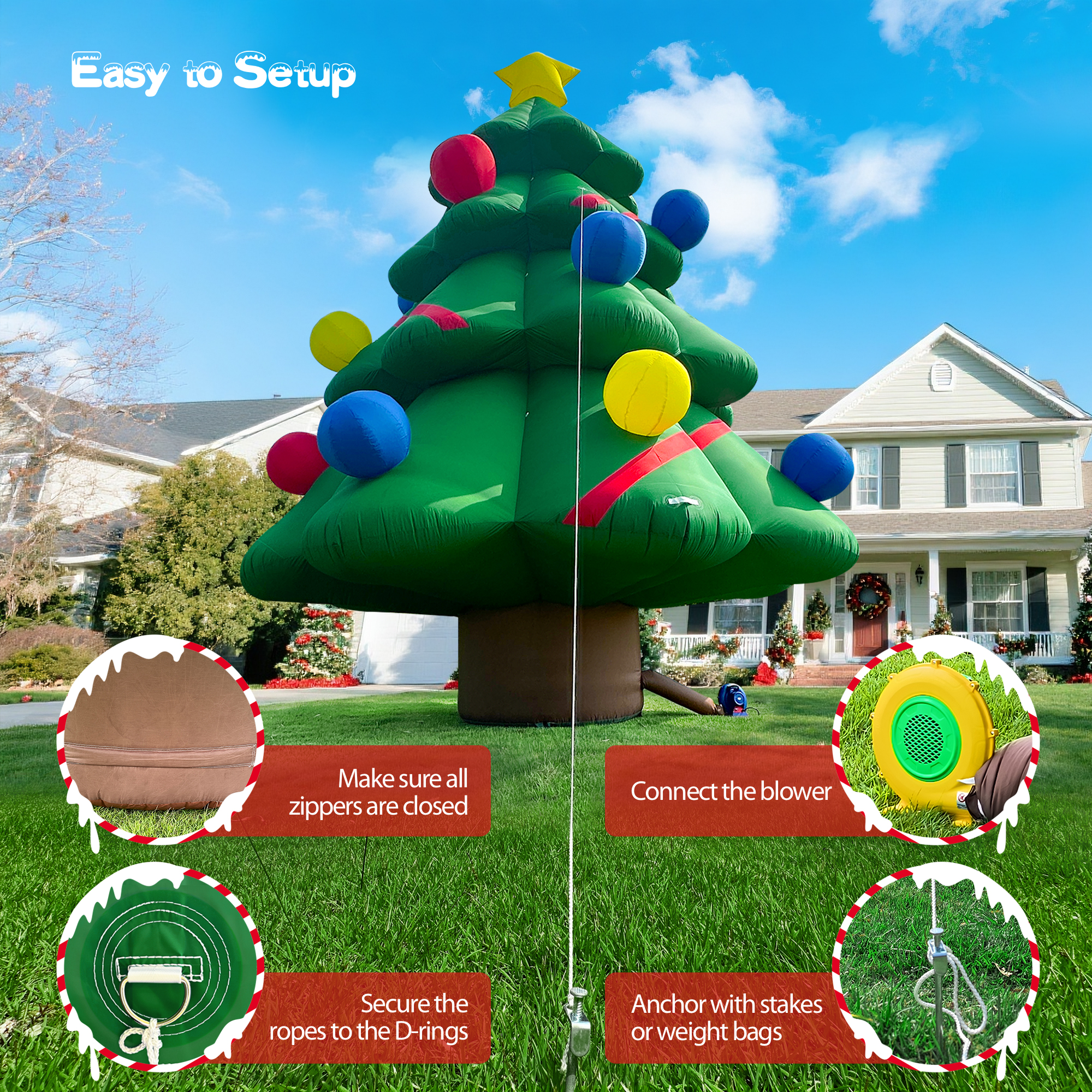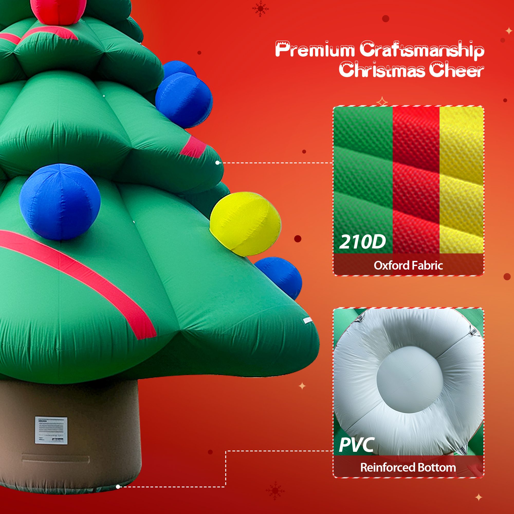 Bring holiday magic to life with this 26FT Christmas Tree Inflatable! Designed with lush green branches, colorful oversized ornaments, and a golden star topper, this giant inflatable captures the joy of Christmas in a bold display.