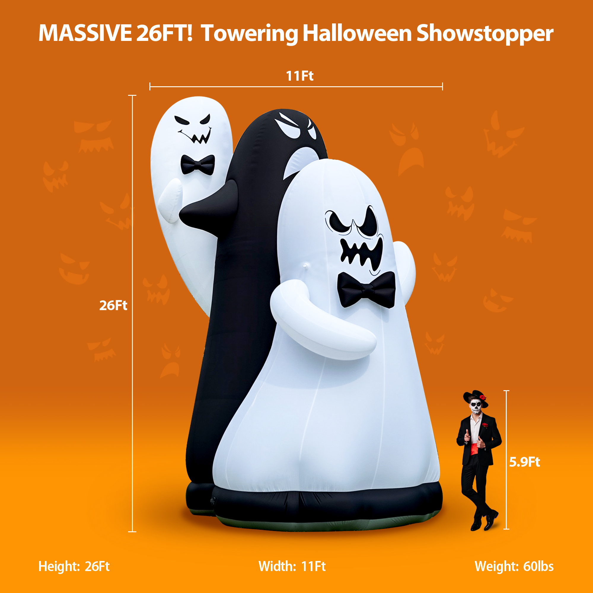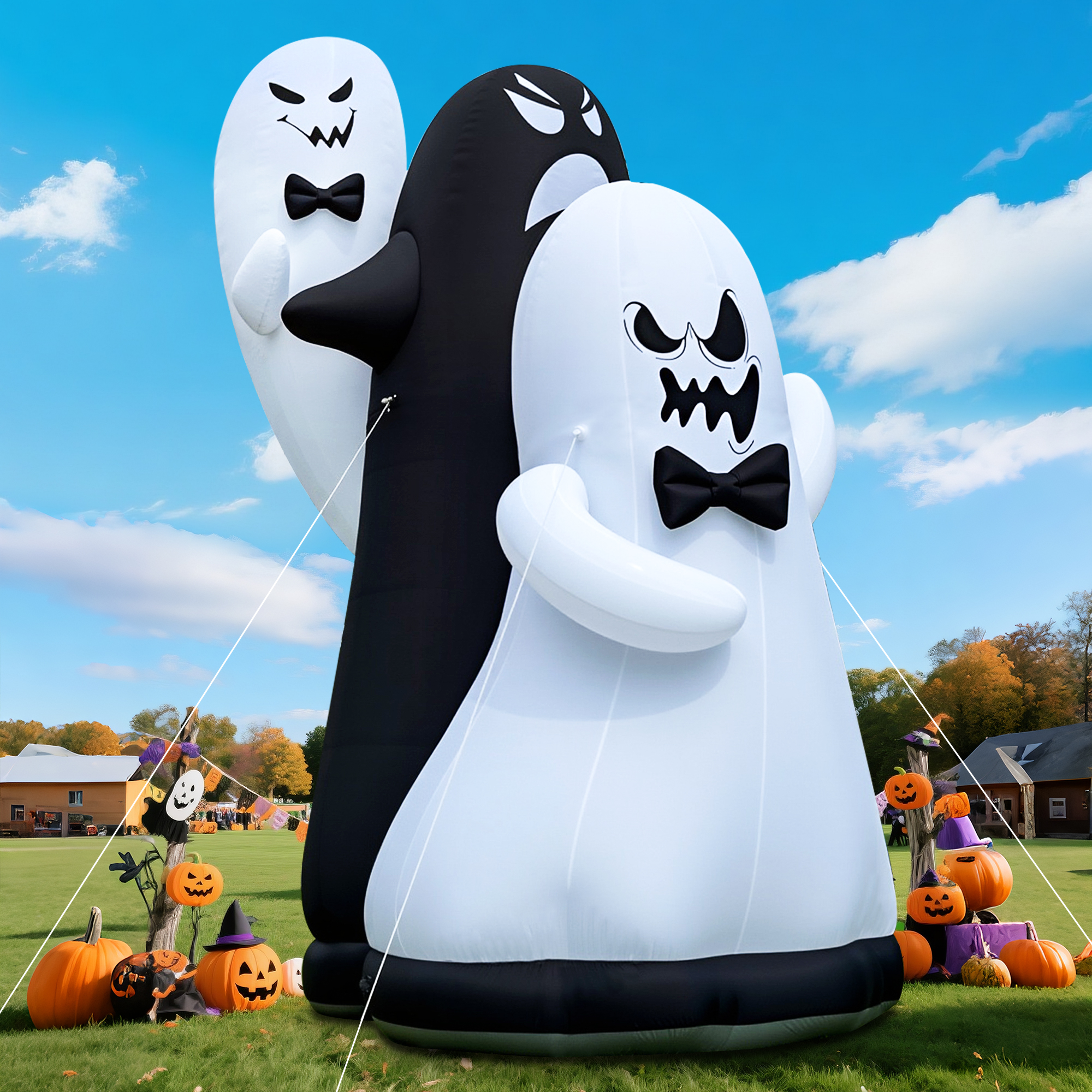 Wellcomer 26 ft Giant Inflatable Ghosts Team – Halloween Décor