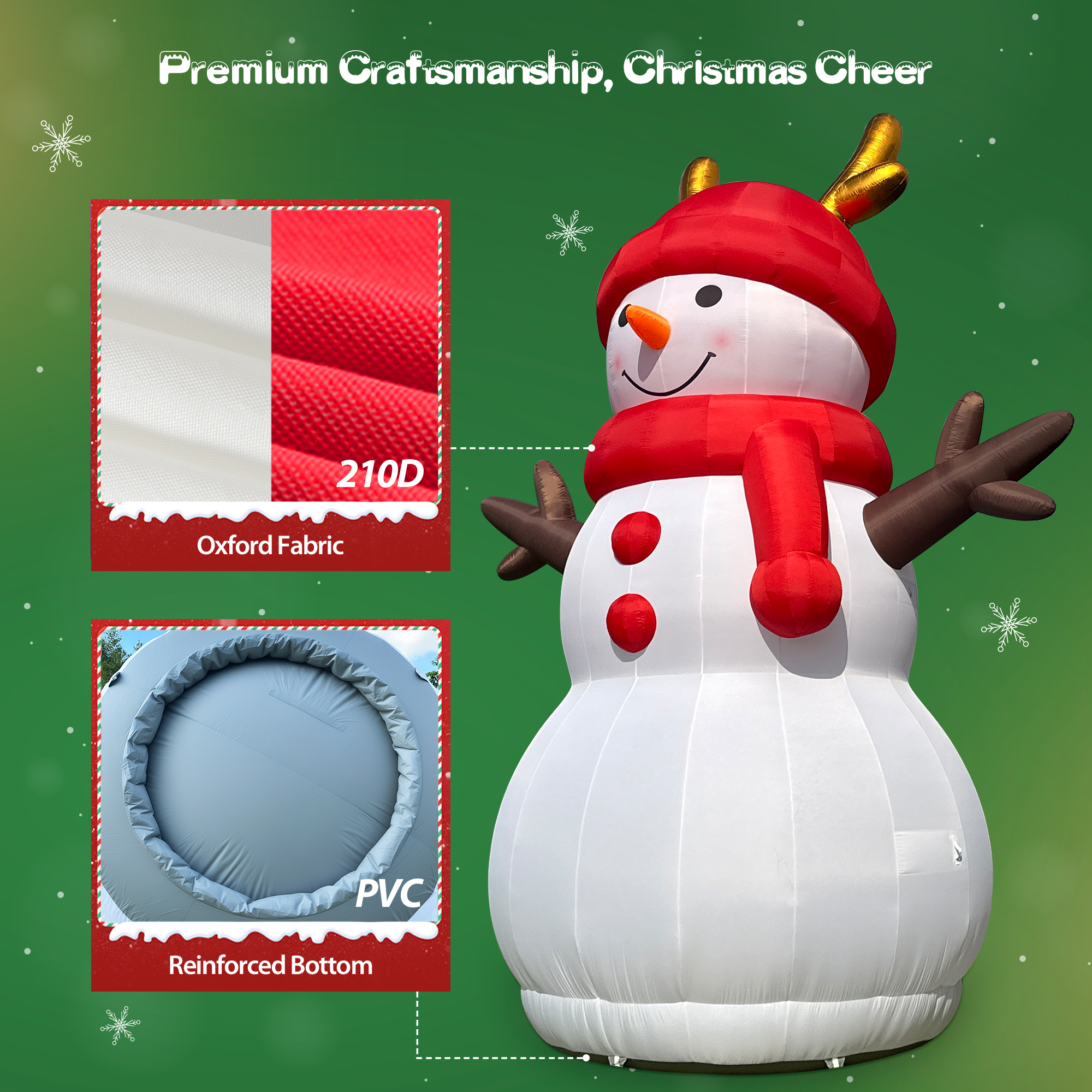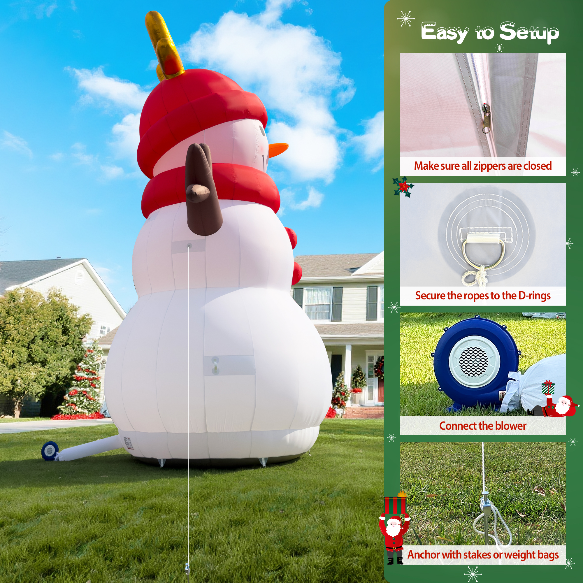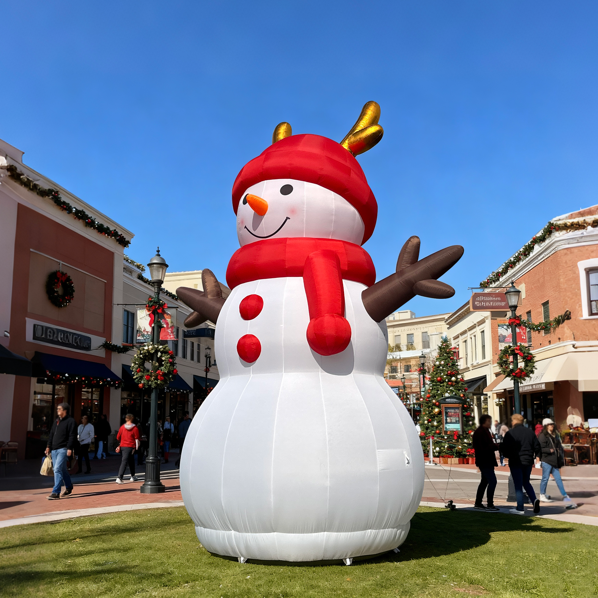 Make your holidays unforgettable with this 26FT Giant Snowman Inflatable! Featuring a cheerful smile, bright red scarf, festive hat, and golden antlers, this giant snowman is the perfect way to bring Christmas magic to your front yard or event.