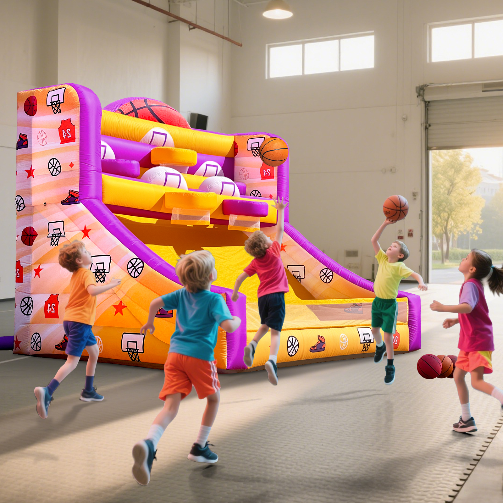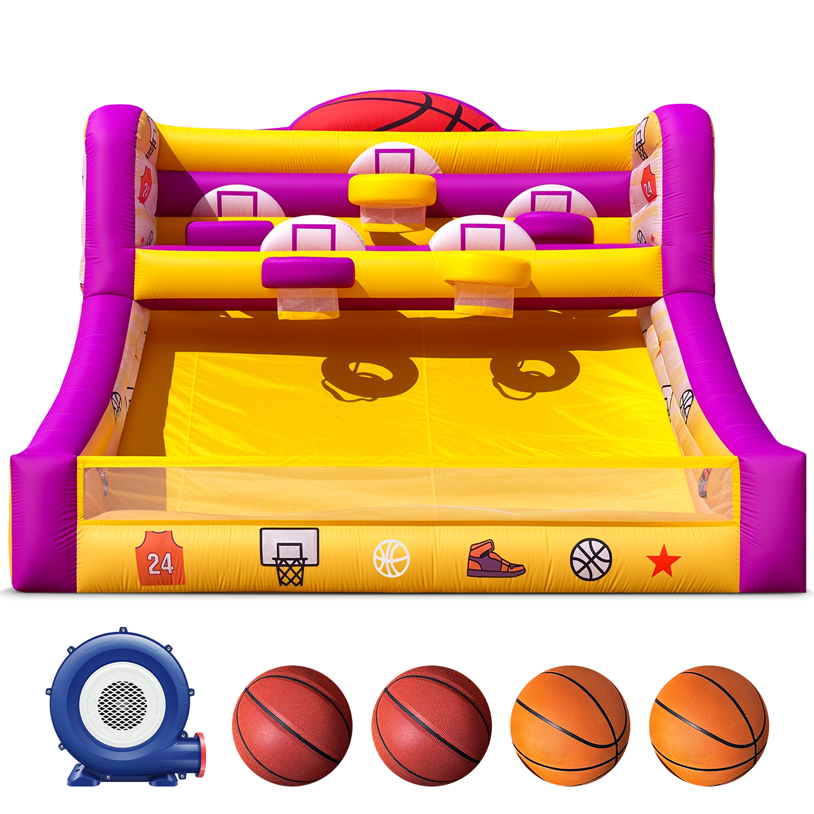 Wellcomer Giant Inflatable Basketball Arcade Game for kids w/ Blowers and Basketballs
