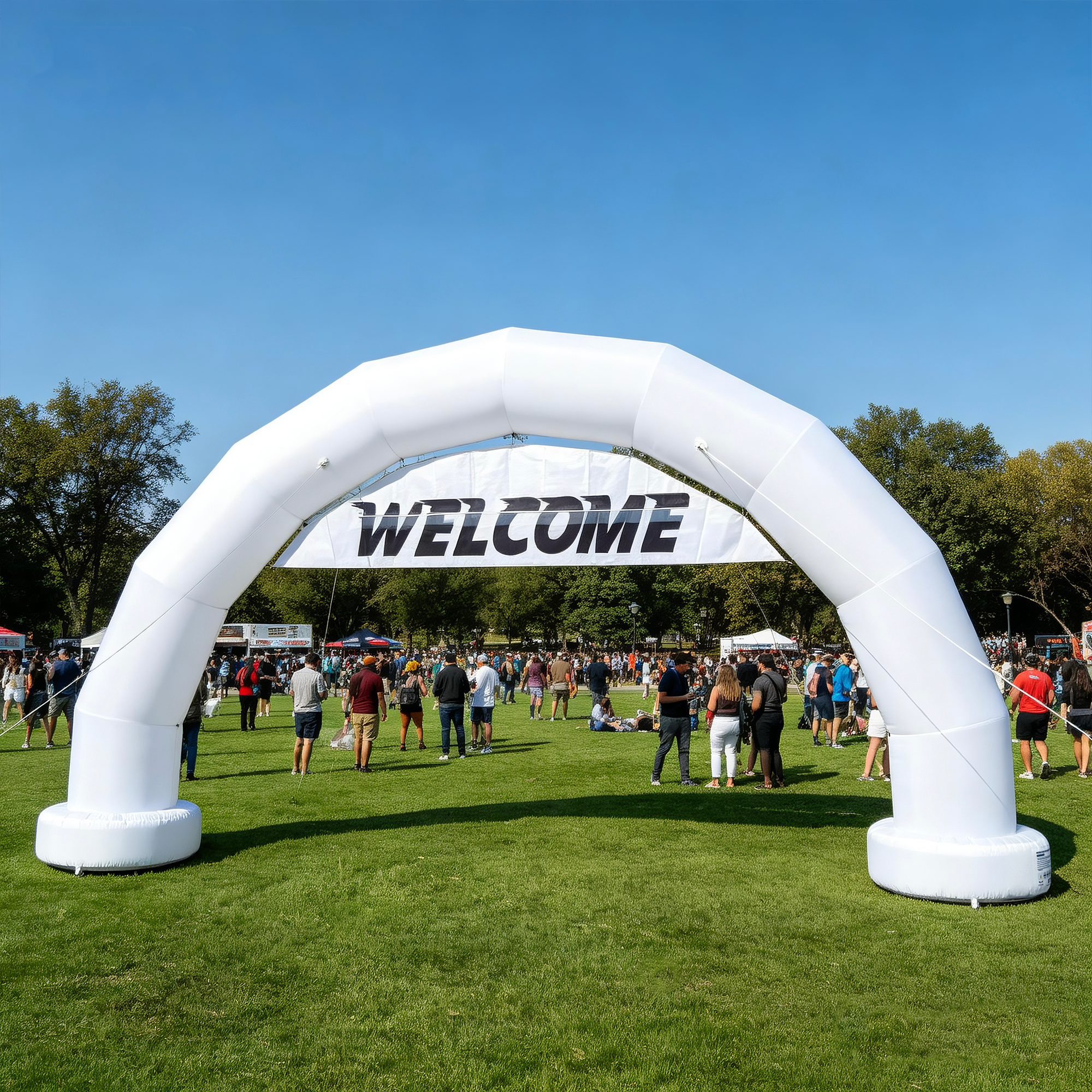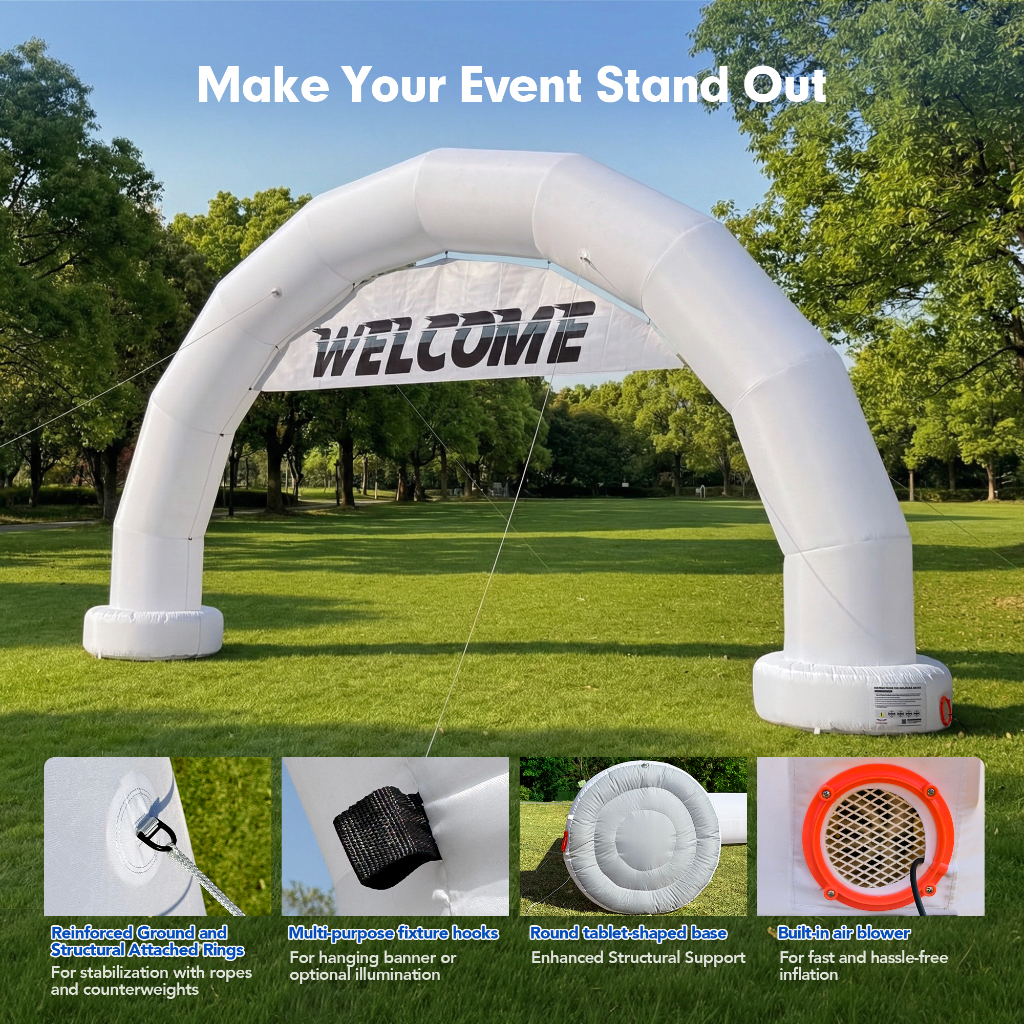 Wellcomer Half-Circle 20.8×11.5 Inflatable Event Arch – White with Banner