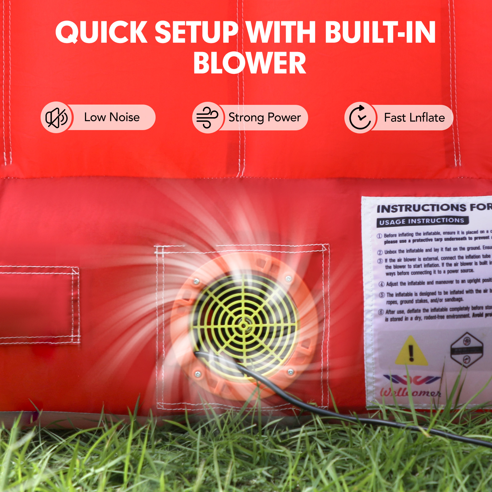 Adult supervision is required at all times during play. Recommended for children ages 3 and older. Ensure the inflatable is fully secured and anchored before use to prevent tipping or movement.