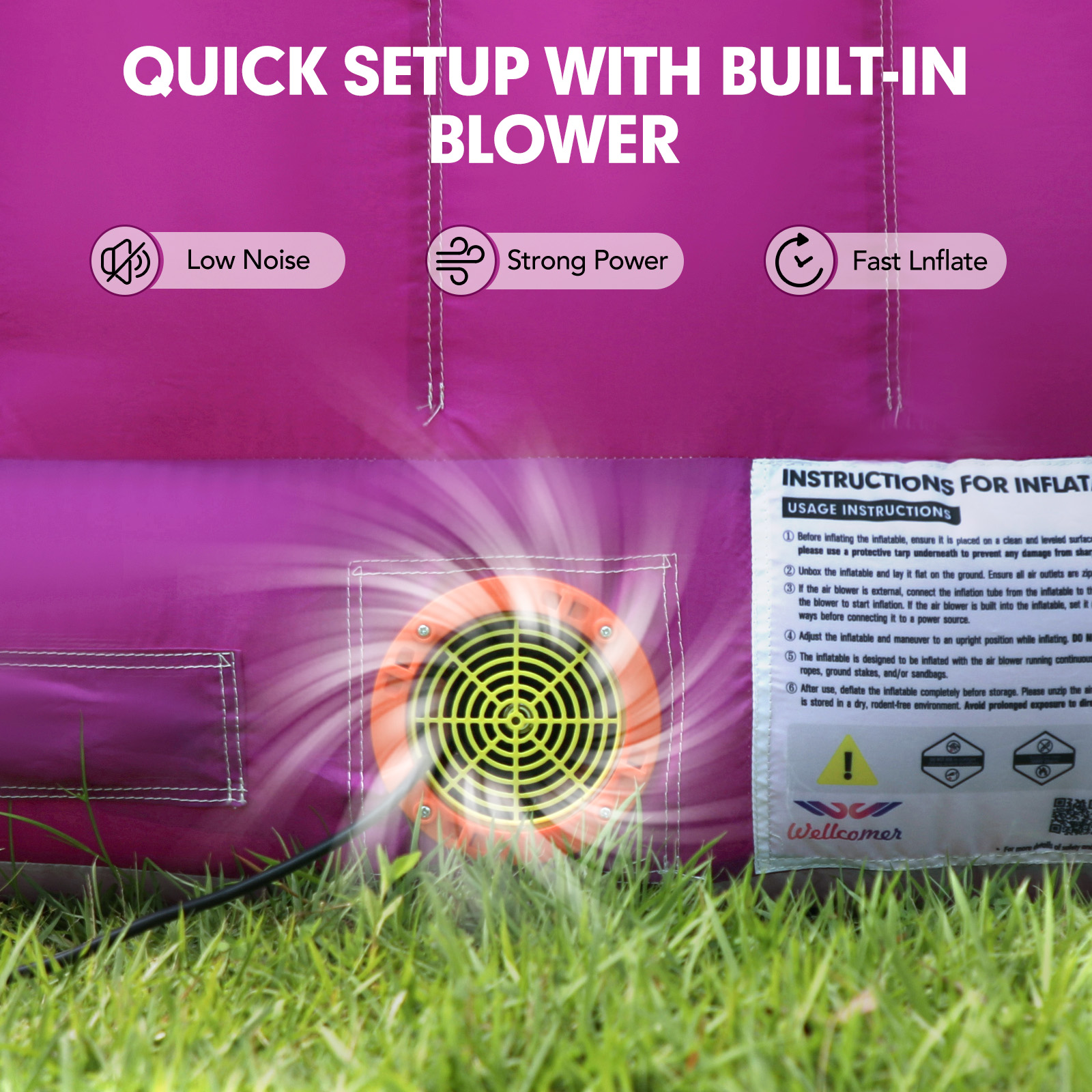 Adult supervision is required at all times during play. Recommended for children ages 3 and older. Ensure the inflatable is fully secured and anchored before use to prevent tipping or movement.