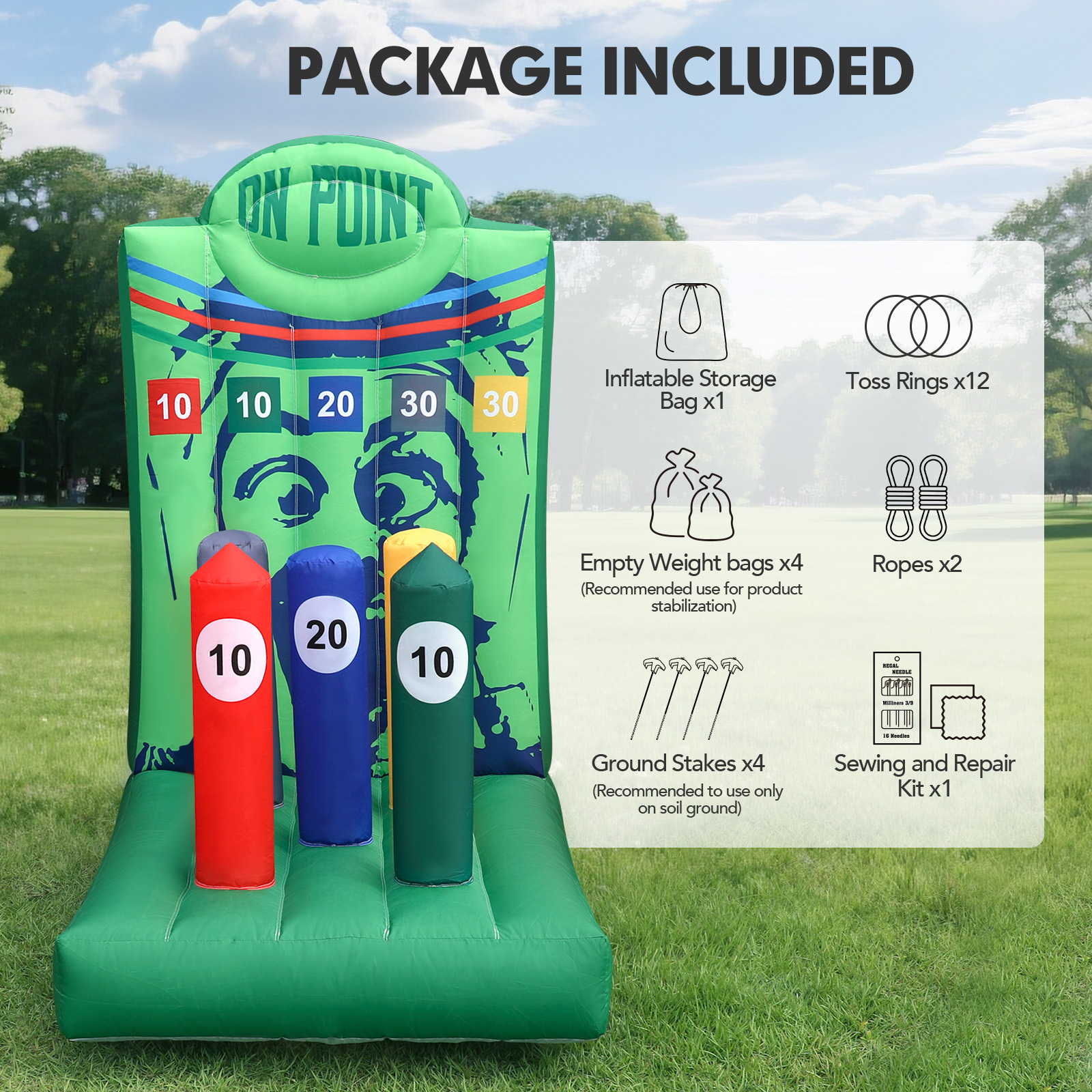 • Complete Set Included: Comes with 12x Toss Rings, 1x Pump, 4x Empty Weight bags, 4x Ground Stakes & Ropes, x1 Inflatable Storage Bag, 1x Sewing and Repair Kit