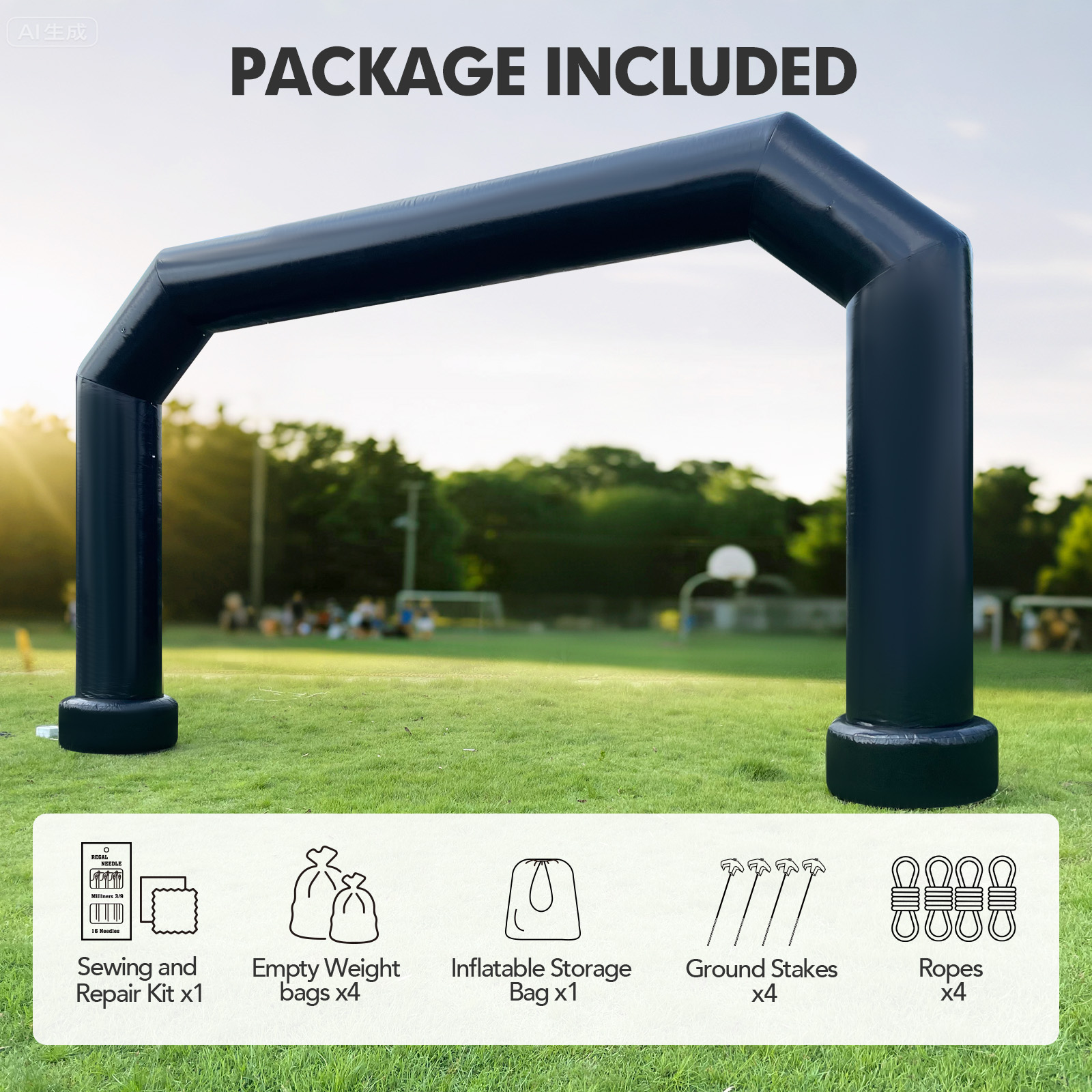 Wellcomer 21Ft PVC Polygon Inflatable Arch- Black